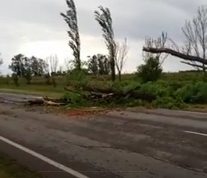 En el acceso este de Corral de Bustos Ifflinger un árbol caído obstaculizaba media calzada de la ruta provincial N° 11 aunque estaba habilitada al tránsito con la señalización y el control por parte de la policía caminera.