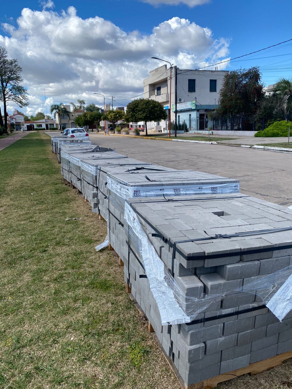 Para ello se usarán adoquines y baldosas especiales que ya están sobre la plaza en la vereda de calle San Martín. El resto del material se encuentra acopiado en un terreno que está frente a la Municipalidad.