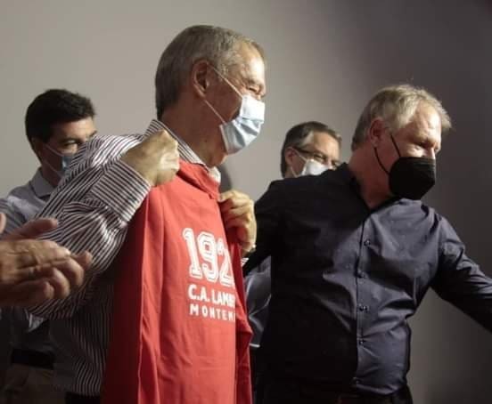 En el marco de la conferencia de prensa que el Gobernador Juan Schiaretti brindó en la sede social del Club Atlético Lambert, el Presidente de la Institución, Gustavo Bordese, le hizo entrega de una remera alusiva al Centenario del Club que se celebra el año que viene.