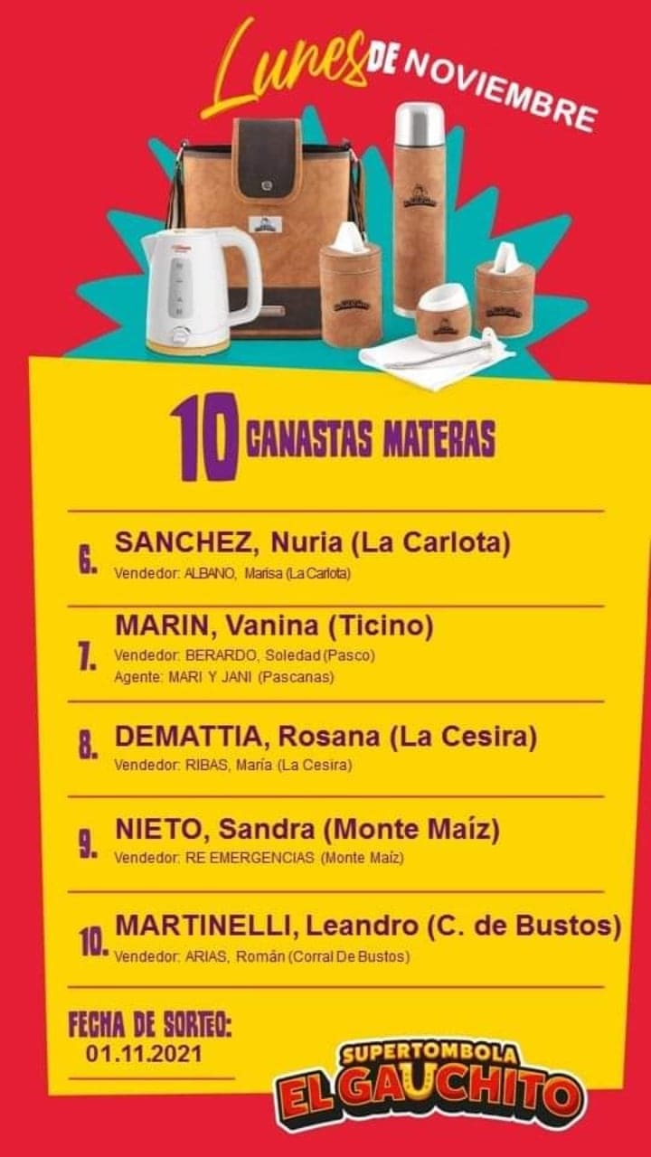 ¡Lindo clima para unos mates! ☁️ ¡Se van las primeras Canastas de Noviembre! Conocé a los 10 Ganadores:
