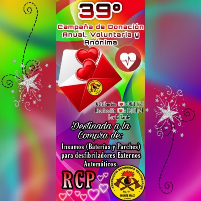 La Asociación Bomberos Voluntarios de Monte Maíz invita a la Población a colaborar con nuestra Institución una vez más, cómo es habitual se llevará a cabo la 39° campaña Anual, Voluntaria y Anónima.