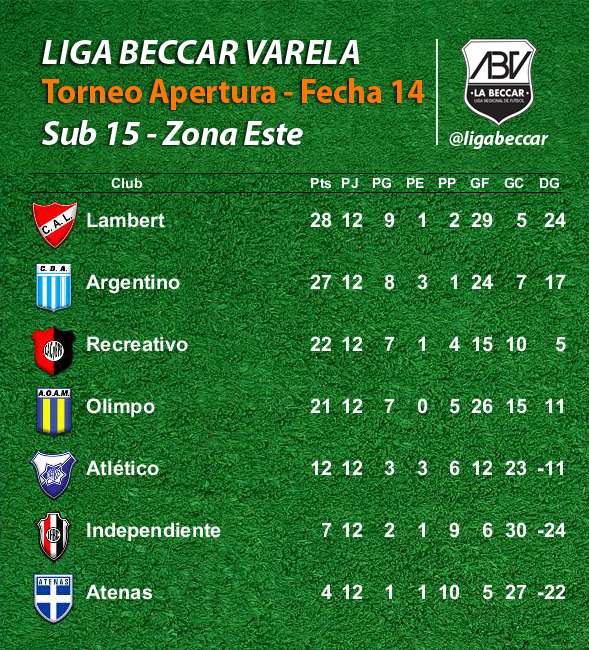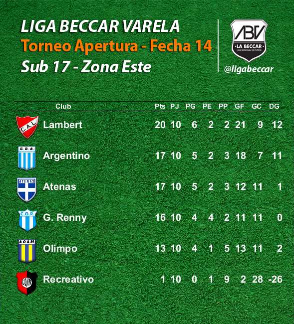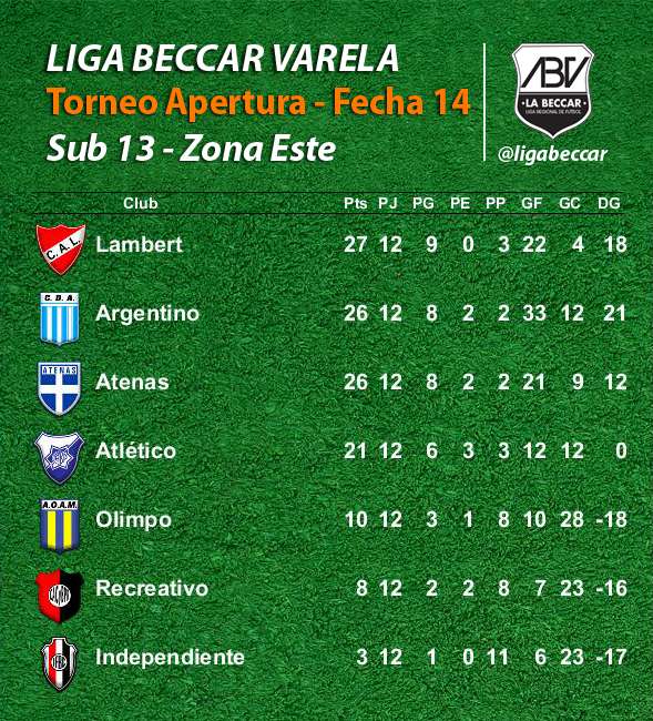 Estos fueron los resultados registrados en las categorías puntuables en la jornada del sábado, por la 14ta y última fecha del Torneo Apertura “José Racca” de divisiones inferiores de la Liga Beccar Varela de fútbol.