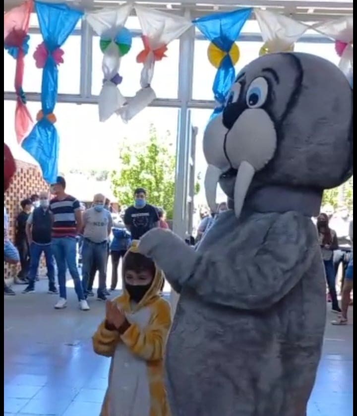 Un hecho inédito se dio en la escuela José de San Martín en el día de las elecciones Legislativas 2021 cuando un personaje de nuestro pueblo, el Payaso Pururú, ingresó a votar vestido de morsa y junto a su hijo también con un disfraz.