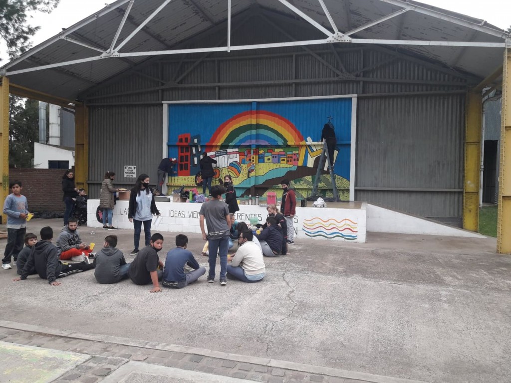 En el marco de los festejos por los 17 años de vida, alumnos del Instituto Especial del Divino Niño Jesús pintaron un mural en el escenario del Paseo de la hermandad.