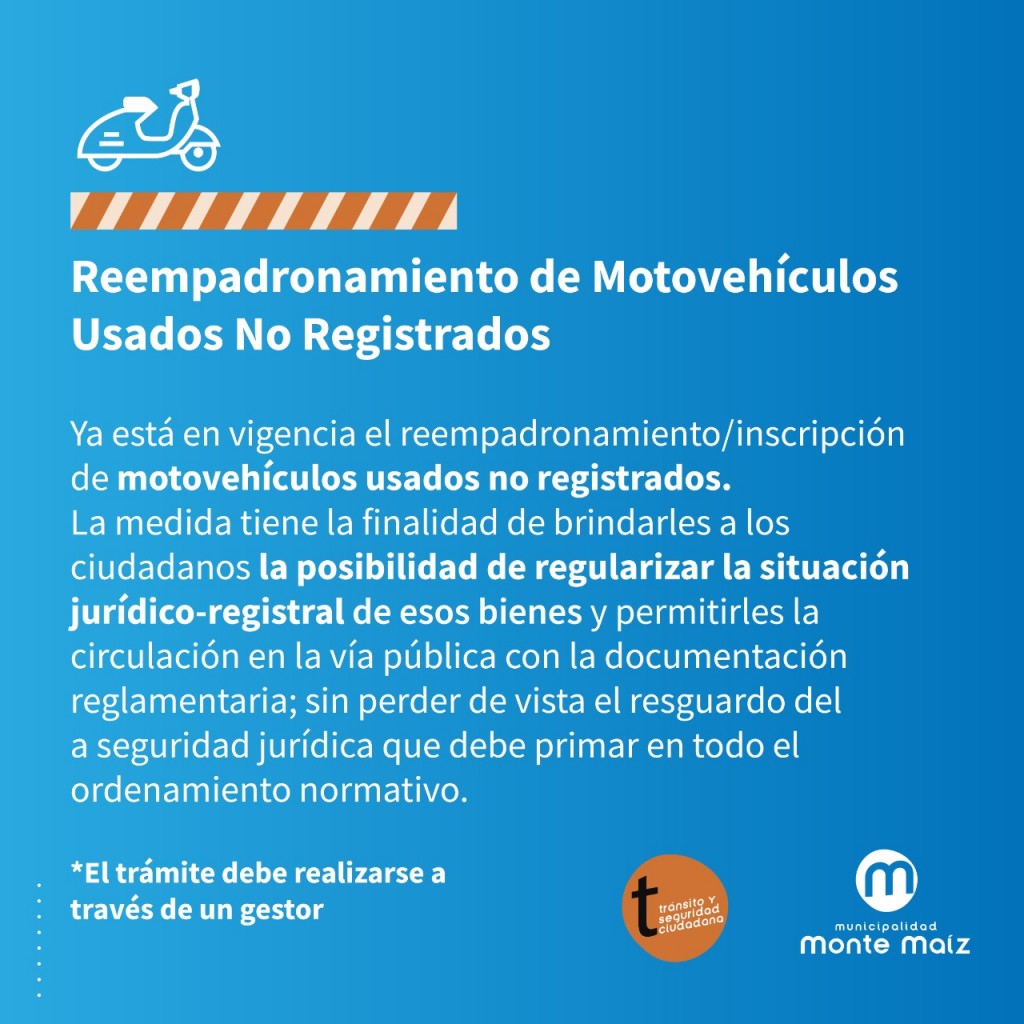 Ya está en vigencia el reempadronamiento/inscripción de motovehículos usados no registrados.