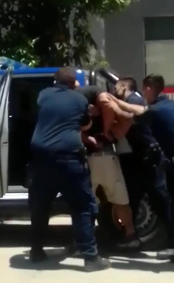 Corresponsales espontáneos enviaron imágenes donde tres policías forcejean con un hombre esposado intentando introducirlo dentro del patrullero, en la vía pública de Canals. Se puede escuchar a vecinos gritar en desacuerdo con la forma en que se desarrollan las acciones, y al mismo hombre pedir que le aflojen las esposas.