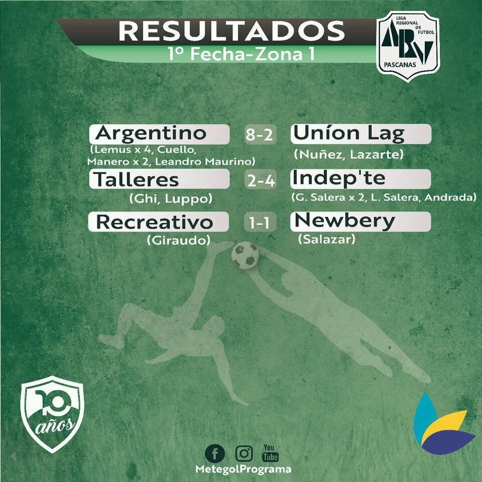 ARGENTINO GOLEÓ A UNIÓN LAGUNENSE EN MONTE MAÍZ. LAMBERT JUEGA EL MIÉRCOLES CON SPORTIVO CHAZÓN. 1° FECHA. DATOS EN LAS PIZARRAS DE METEGOL