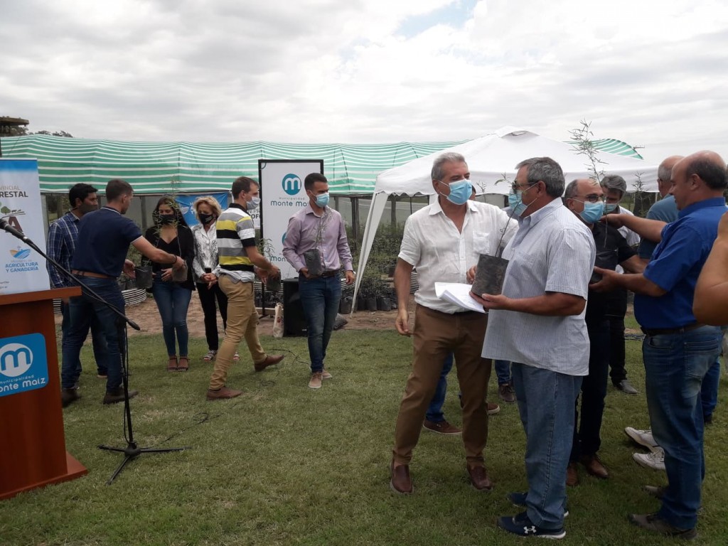 En esta recorrida por distintos puntos del Departamento Unión se entregaron 3.700 plantas para 25 productores en San Antonio de Litín; 7.500 ejemplares se entregaron en Bell Ville a 40 productores y 10.000 se entregaron en Monte Maíz.