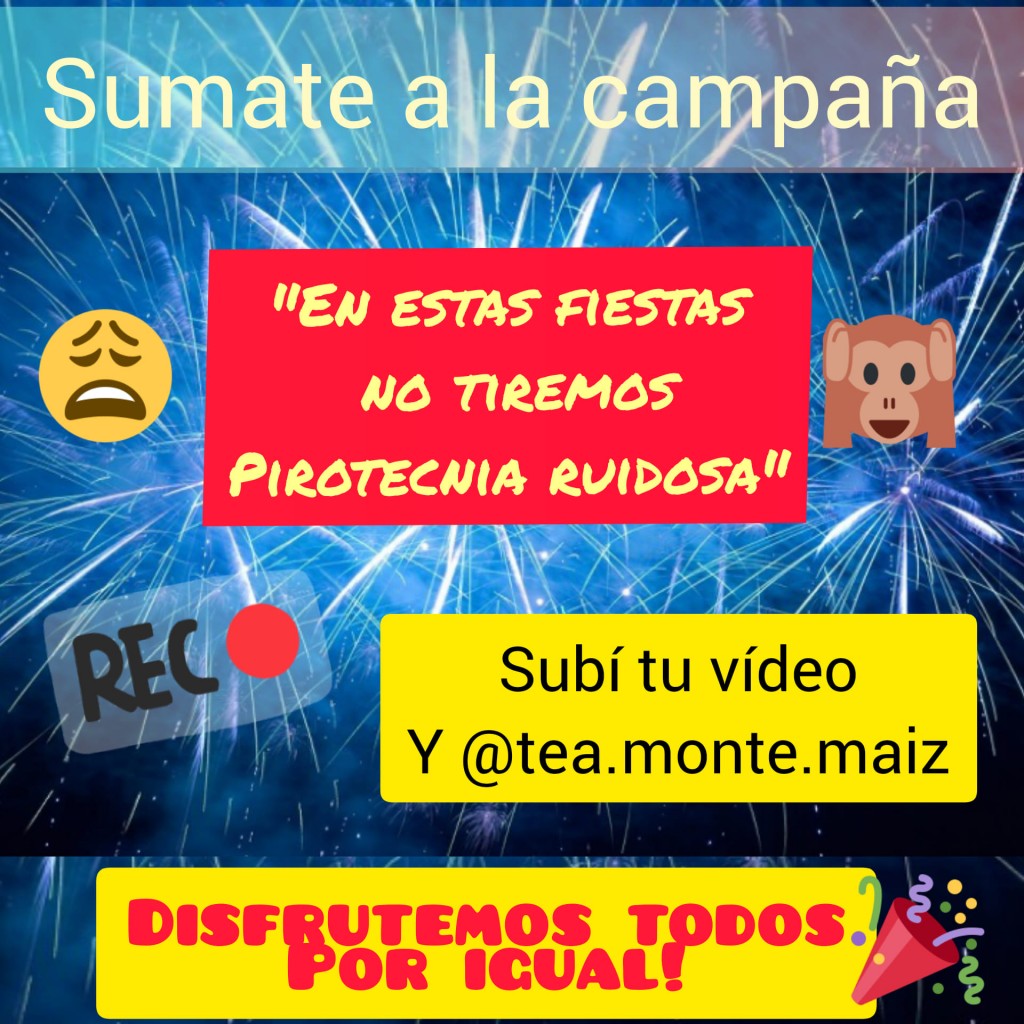 El Grupo TEA Monte Maíz, familias con chicos con trastornos del espectro autista, lanzaron una campaña vía redes sociales para pasar las fiestas sin pirotecnia ruidosa. Invitan a la población a publicar un video en su cuenta de Facebook contando la experiencia que viven quienes sufren los ruidos de los petardos, bombas y afines.