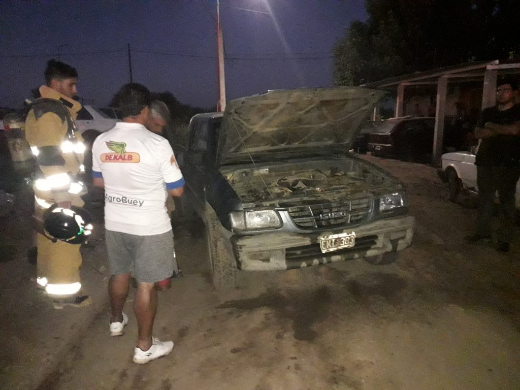 Al arribar al lugar se pudo constatar que una camioneta Izuzu, Dominio EKI 383, propiedad del Sr, Pablo Rodríguez, tomó fuego en el motor cuando el masculino la puso en marcha para salir a hacer las compras.