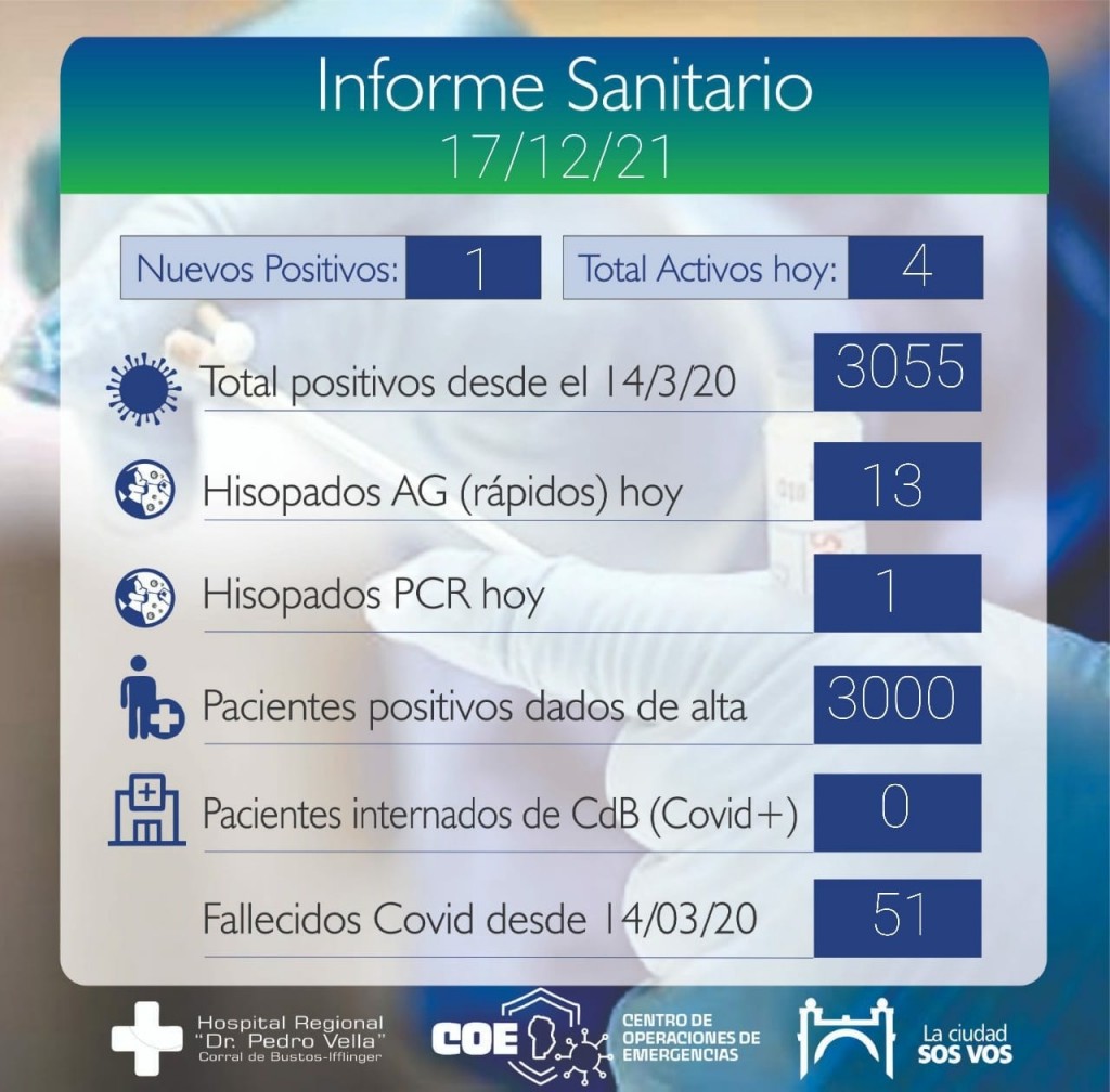 Se confirma el primer caso de Covid-19 de la variante Ómicron en la ciudad de Corral de Bustos Ifflinger. Así lo hizo saber el hospital de la ciudad a través de un comunicado.