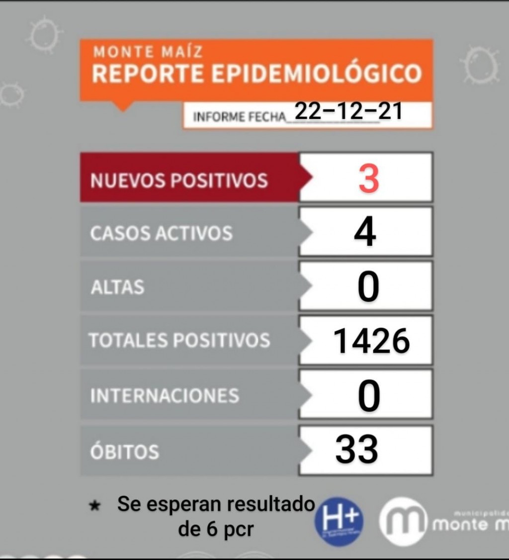 3 CASOS NUEVOS DE COVID 19 EN MONTE MAÍZ