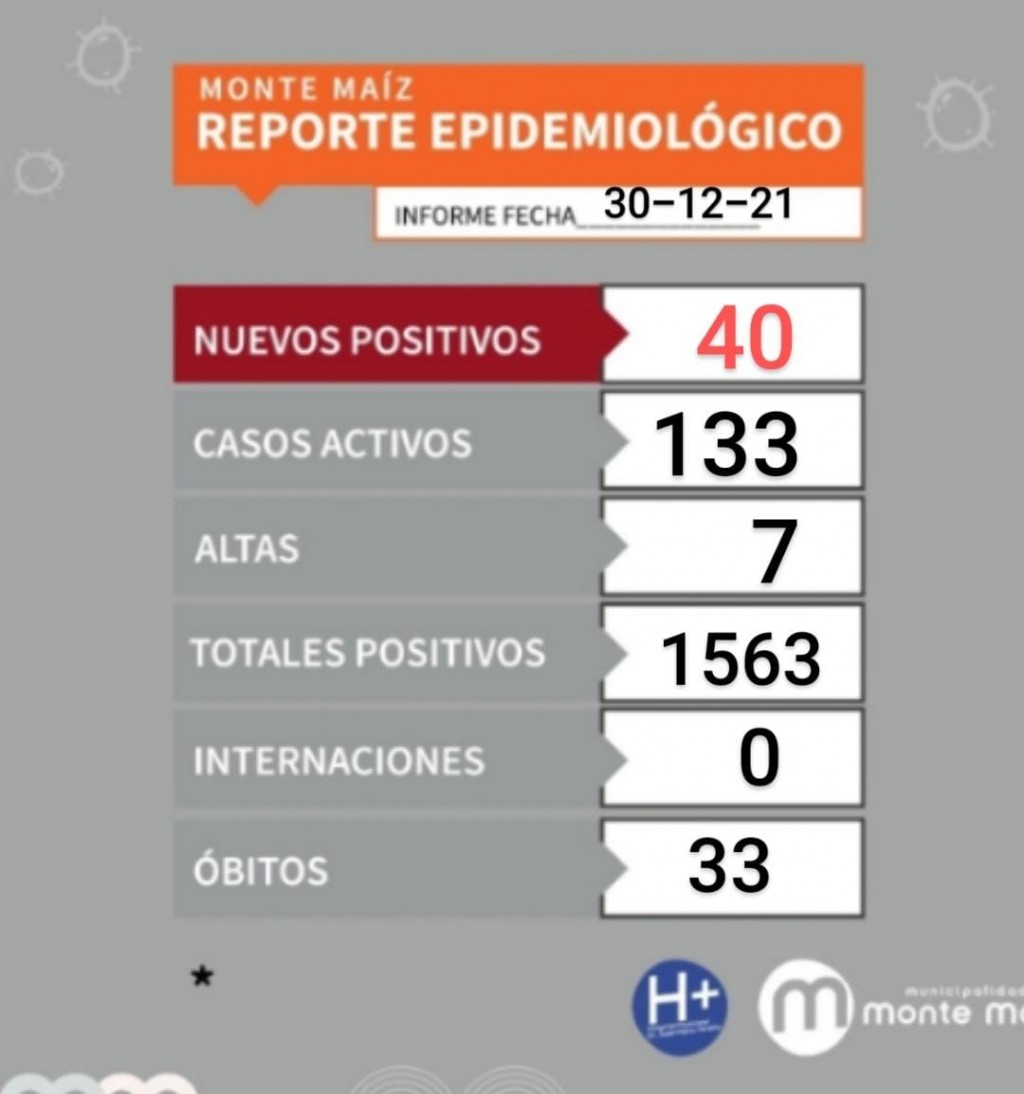 El informe del Hospital Municipal de este jueves por la tarde indicó que finalmente fueron 40 los casos de COVID-19 positivos del día de la fecha. El reporte de las 13:30 hs. había indicado 30 pero se sumaron 10 más de la tarde.