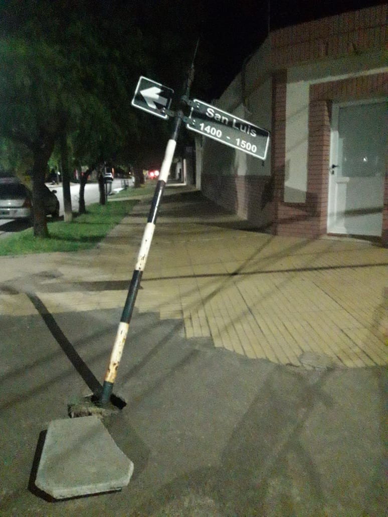 En la madrugada del sábado, autor o autores ignorados intentaron derribar un señalador de calle en la esquina de San Luis, esquina Chubut, en el Centro de Monte Maíz. El mismo quedó vencido aunque no cayó al piso.
