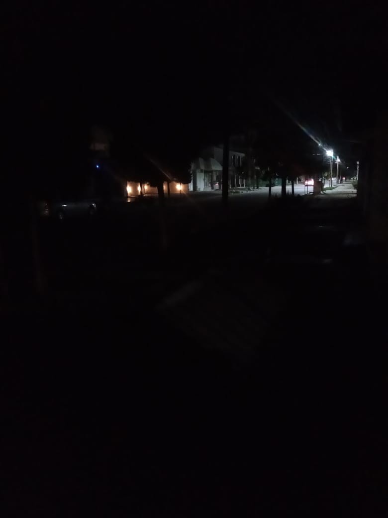 Vecinos de la calle 9 Julio reclaman que desde el lunes la cuadra está a oscuras por algún desperfecto técnico en el alumbrado público.