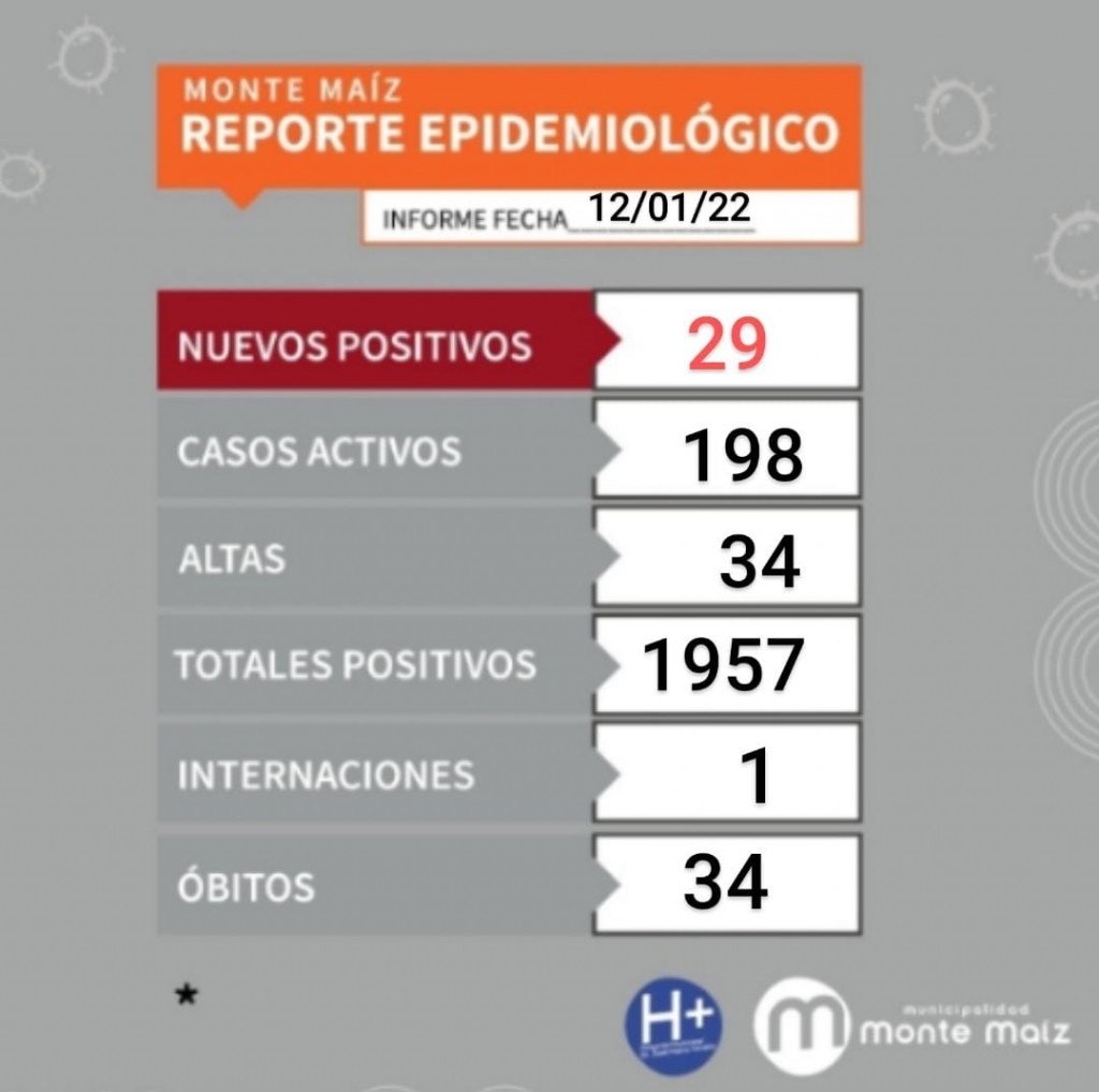 29 CASOS NUEVOS DE COVID-19 EN MONTE MAÍZ