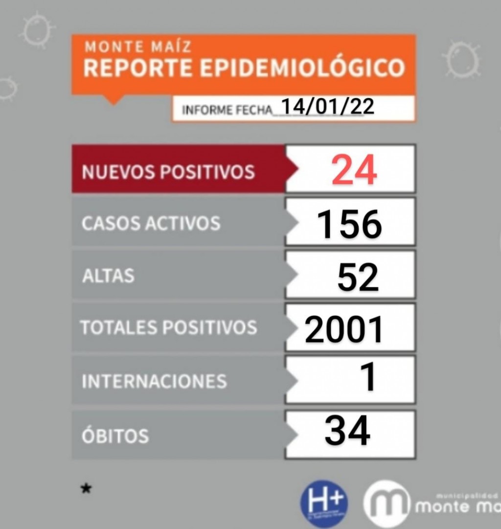 24 CASOS MÁS DE COVID-19 EN MONTE MAÍZ