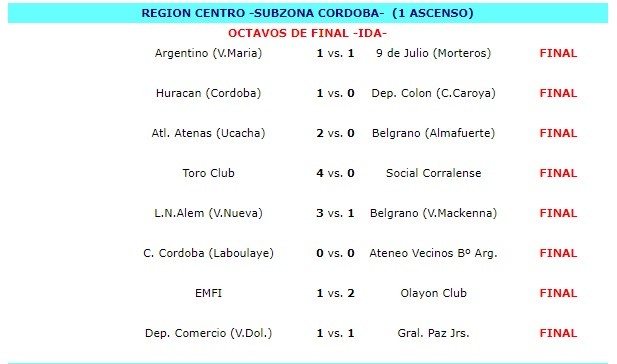 POR LOS OCTAVOS DE FINAL VENCIÓ POR 2 A 0 A BELGRANO DE ALMAFUERTE. PARTIDO DE IDA JUGADO EN UCACHA. RESULTADOS DE SUBZONA EN FOTO PRINCIPAL