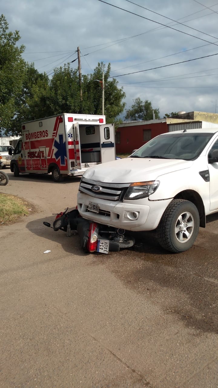 Al arribar al lugar, se constató la colisión de una camioneta, conducida por Diego Giordanengo, y una motocicleta, guiada por Raquel Lima, acompañada por Natali Cabañas.