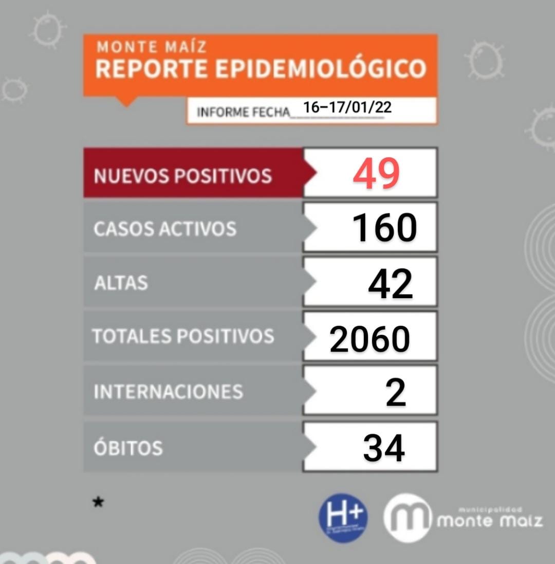 49 CASOS NUEVOS DE COVID-19 EN MONTE MAIZ