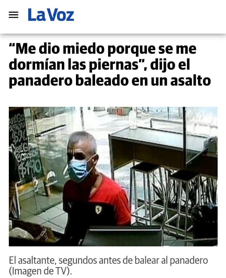 Con esas palabras relat� el panadero Luciano Pipino (24) la sensaci�n que sinti� al ser baleado a quemarropa por un delincuente que asalt� la panader�a que mont� con su hermano en barrio Alto Alberdi de C�rdoba Capital.