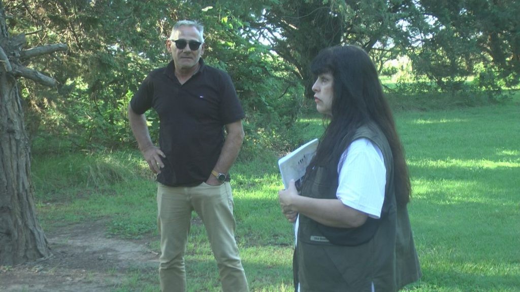 Tras haber difundido Vivencias Producciones la información de la aparición de luces y extrañas marcas en el campo del sr. Leonardo Alfango, la investigadora y periodista Bibiana  Bryson trabaja en el lugar.