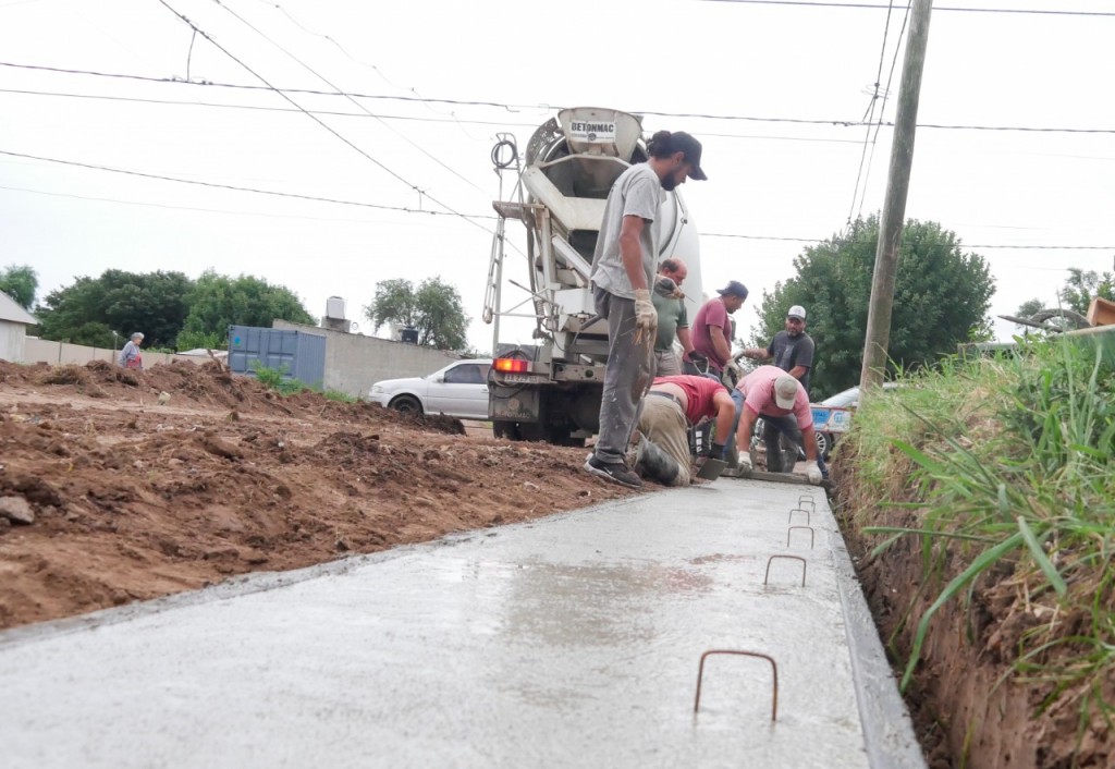 Durante la mañana del viernes avanzó la obra de cordón cuneta en la calle Río Negro, entre 9 de Julio y San Luis, en B° Gobato.