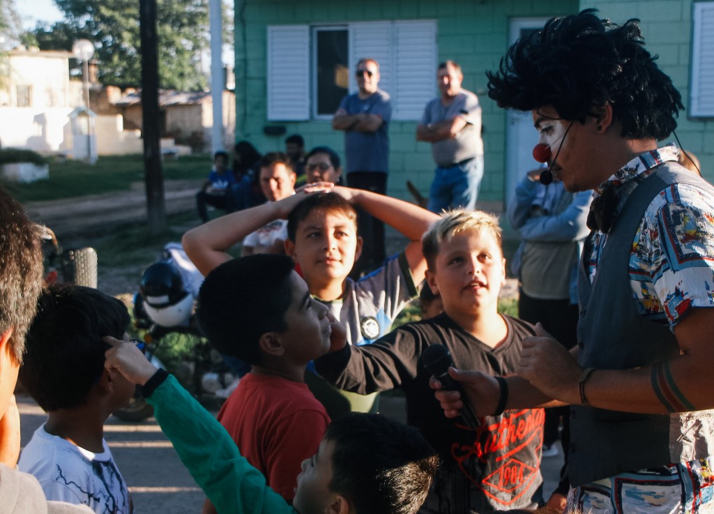 La actuación de Maicena y Chancleta, payasos locales, fue uno de los atractivos de la tarde que más captaron la atención de los niños, con un show cálido, divertido y participativo.