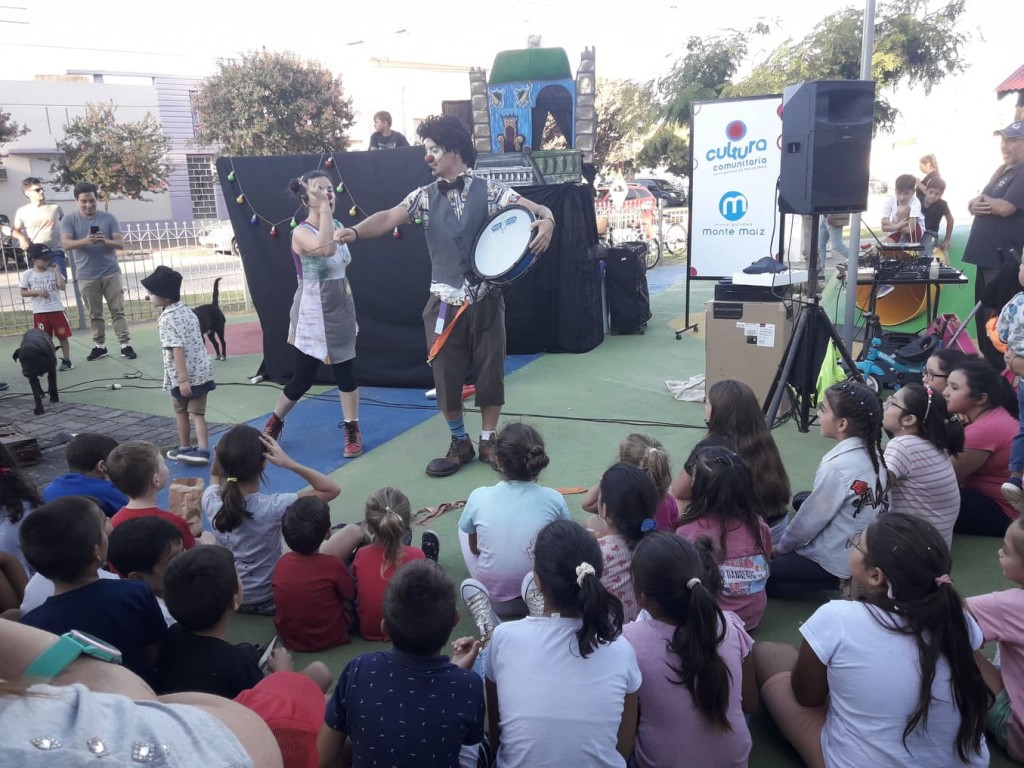 Otro espectáculo infantil de primer nivel brindaron “Maizena y Chancleta” en el parquecito de Monte Maíz el domingo por la tarde.
