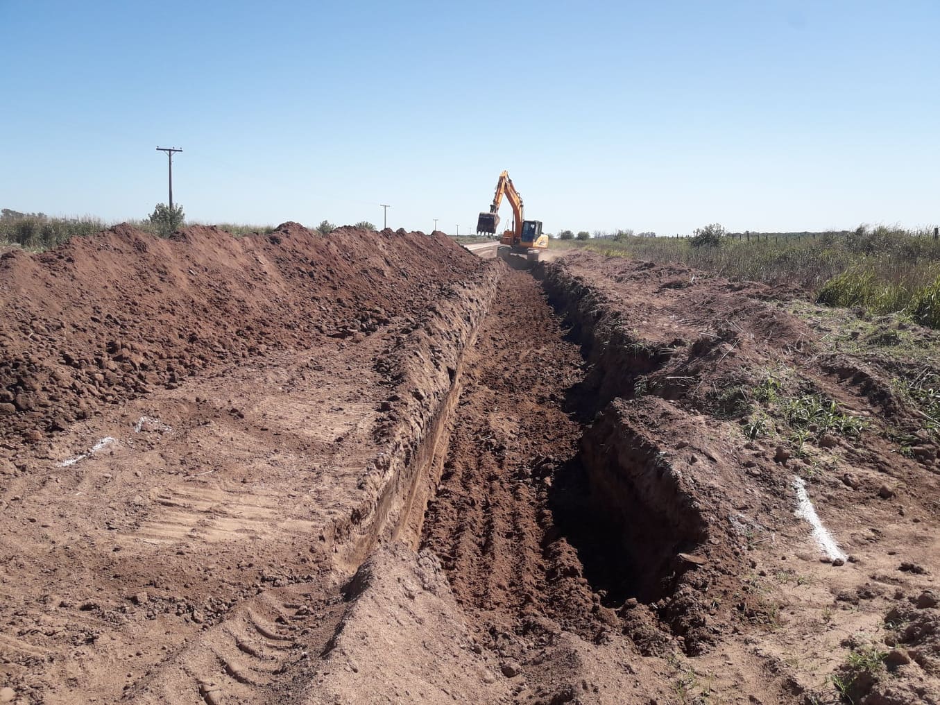 También el desagüe mencionado conectará con el canal de dicha estancia. El mismo, está construido desde hace unos dos años. Al llegar a la intersección con el camino del mencionado establecimiento, el desagüe conectará al preexistente, desviando a la izquierda, recorriendo todo el casco de la estancia, para desembocar luego en el río Saladillo.