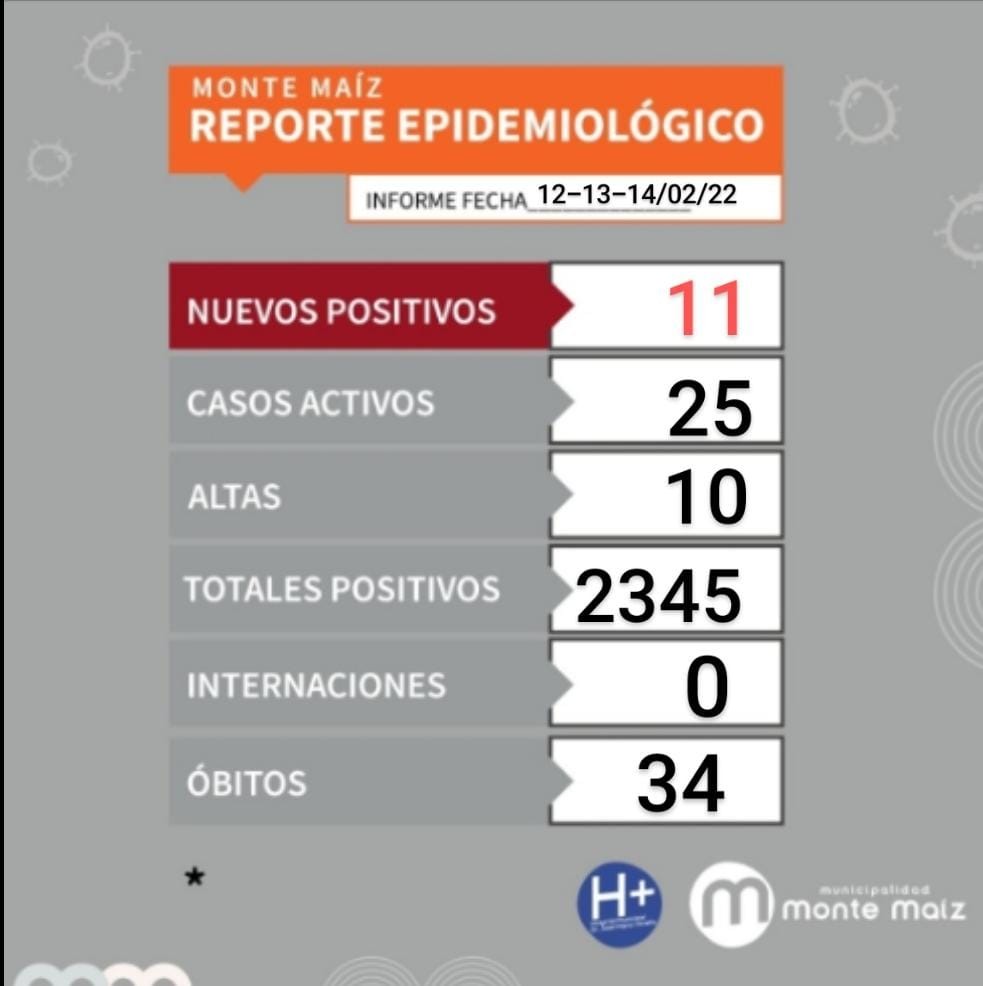 HAY 25 CASOS ACTIVOS EN MONTE MAÍZ