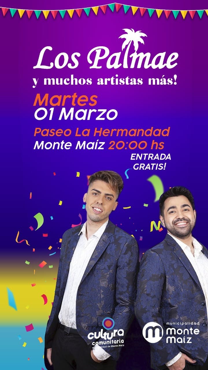 Y el martes 1° de marzo desde las 19 hs. también en el Paseo se festejará el Carnaval propiamente dicho con artistas locales, una feria de artesanos, una batucada local y el cierre con Los Palmae a pura cumbia.