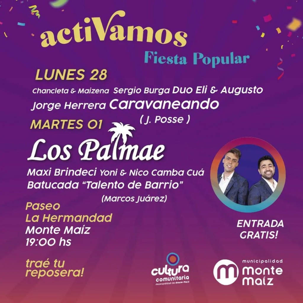 Los Palmae, Maxi Brindeci, Yoni y Nico, Camba Cuá, Batucada Talento de Barrio de Marcos Juárez.