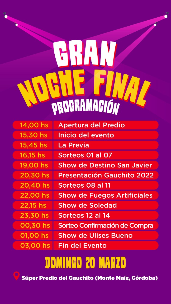 CUENTA REGRESIVA PARA LA NOCHE DEL SORTEO FINAL