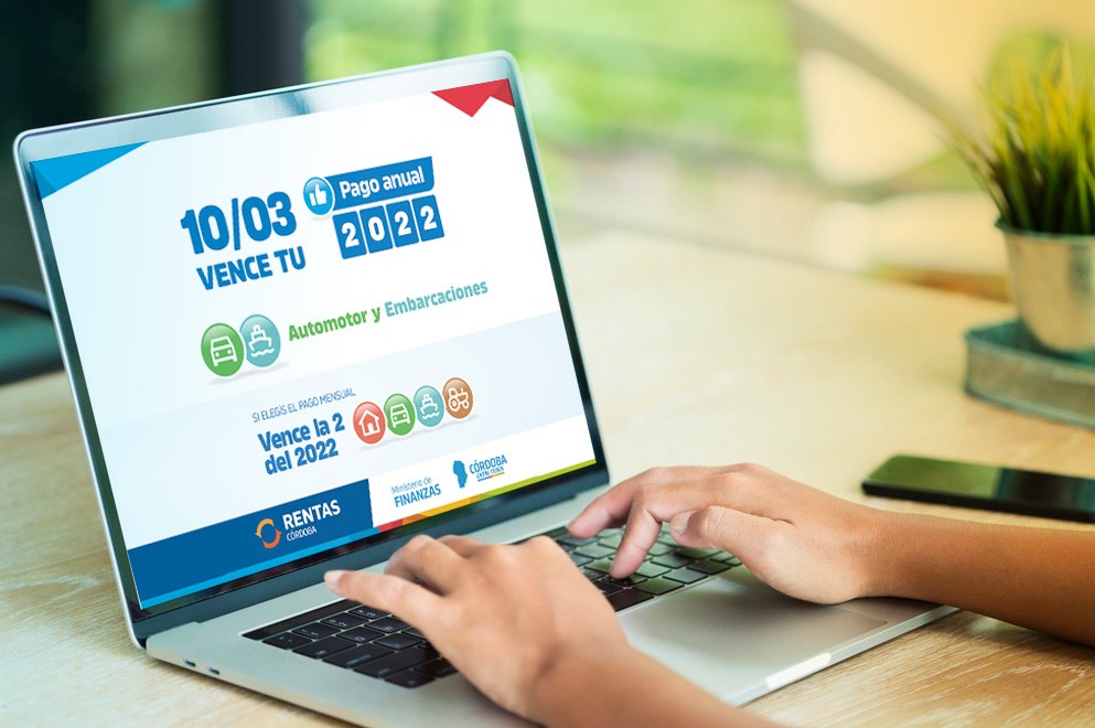 Rentas informa que el jueves 10 de marzo vence el pago anual de los Impuestos Automotor y Embarcaciones. También vence la segunda cuota del Inmobiliario Urbano y Rural, el Automotor y Embarcaciones. Todas las gestiones pueden realizarse desde la web RentasCordoba.gob.ar. Además, allí se encuentran las novedades de este año como beneficios, medios de pago y agenda de vencimientos.