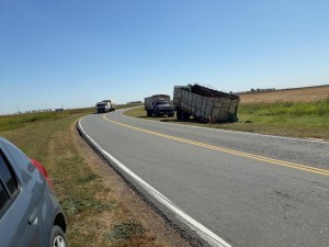 El Sábado 17 de Marzo a las 23.30 hs. aproximadamente volcó el acoplado de un camión derramando cereal sobre Ruta 11.