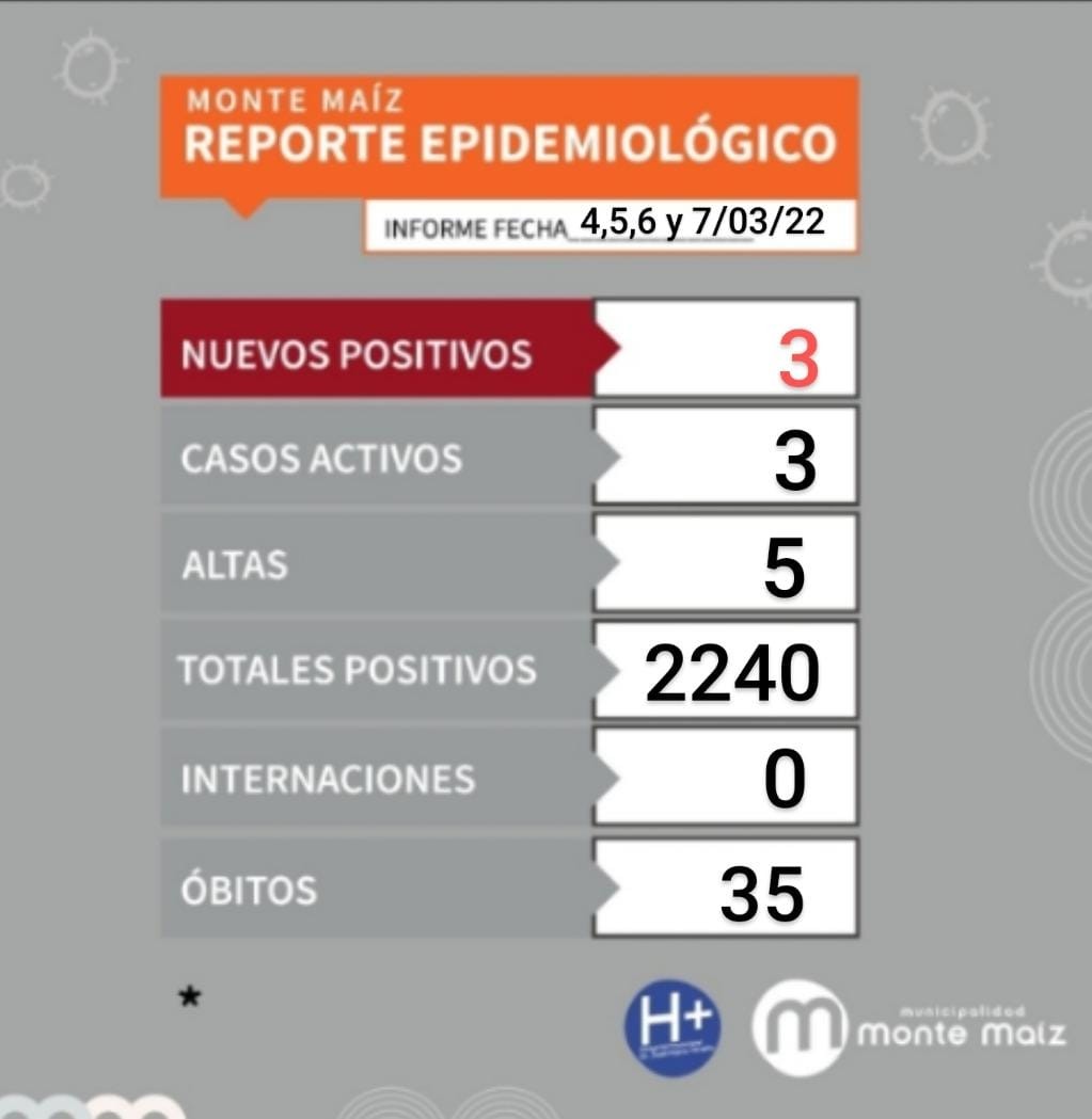 COVID-19: SOLO 3 CASOS ACTIVOS EN MONTE MAÍZ