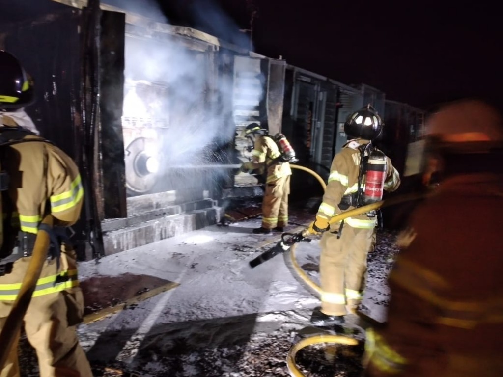 Trabajaron además bomberos de Baldissera, el fuego por momentos se aplacaba y luego volvía a tomar intensidad. Aggreko es una empresa privada contratada por Epec para aportar potencia cuando es necesario en picos de consumo.