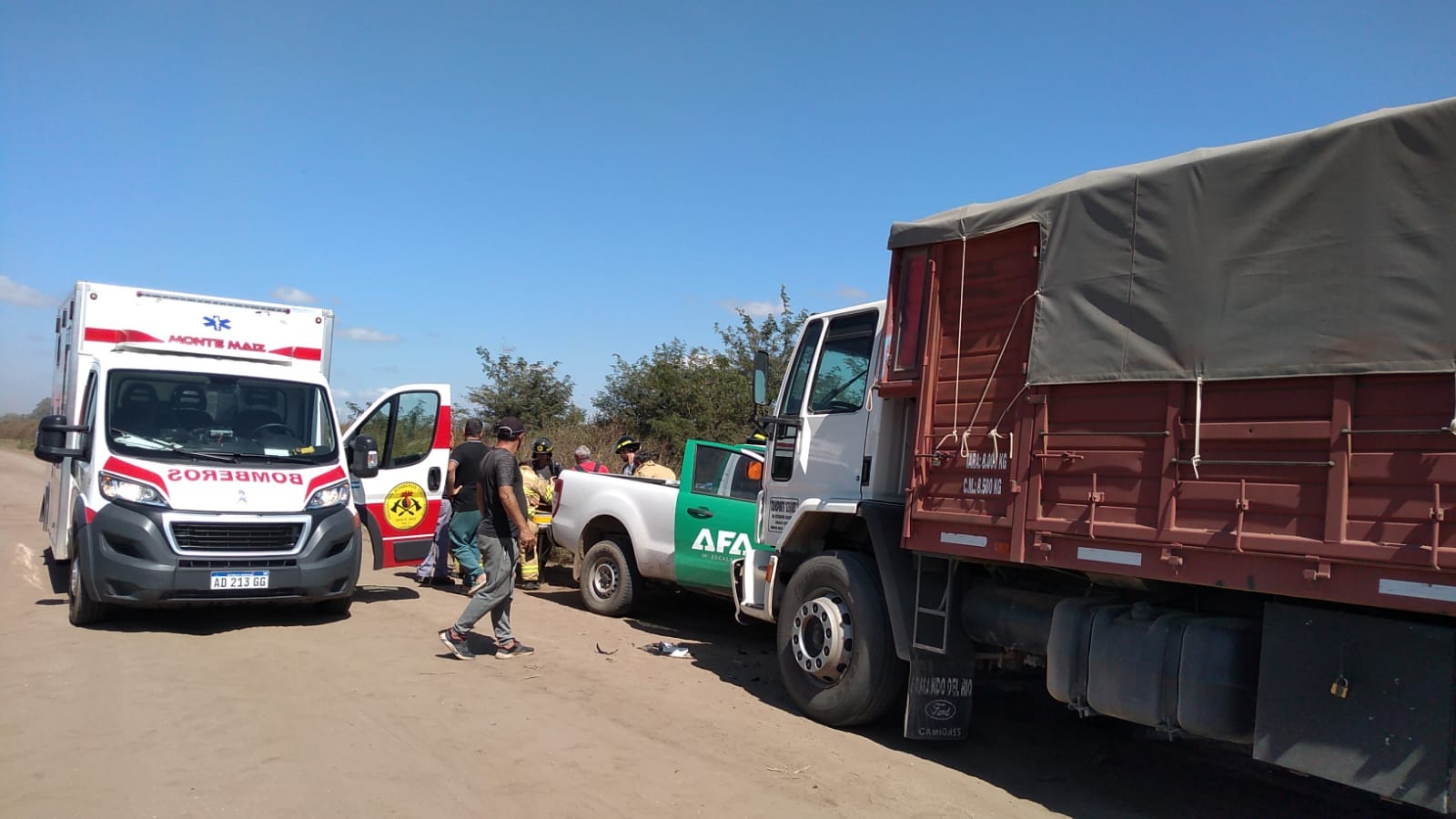 Aproximadamente a las 12:00 hs. de este mediodía, Bomberos Voluntarios de Monte Maíz fueron convocados al camino a Colonia Barge por un accidente de tránsito entre un camión y una camioneta.