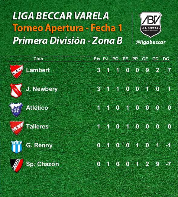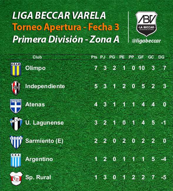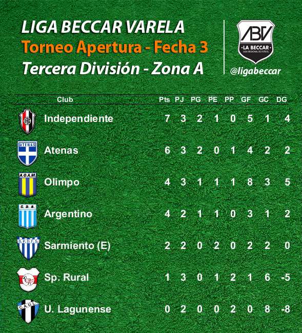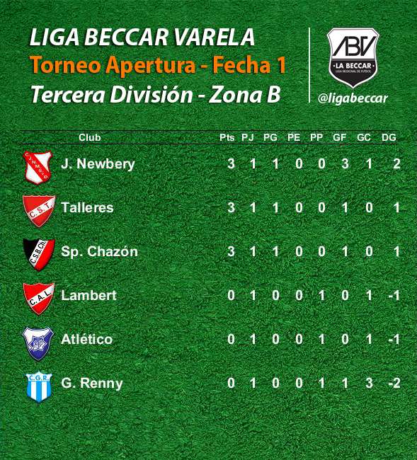 Resultados y autores de goles de los partidos del Torneo Apertura "Marcos Russo" de Tercera División de la Liga Beccar Varela, disputados en la noche del miércoles 30 de marzo, con los que se completó la 2da fecha en la Zona A y la 1ra fecha en la Zona B.