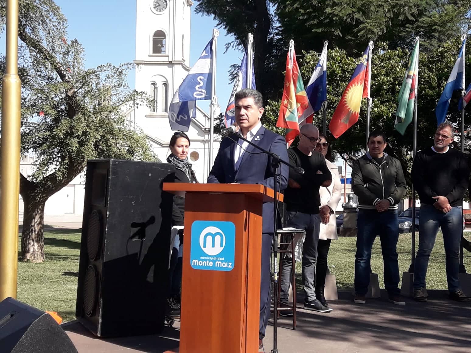 Se entonaron la estrofas del Himno Nacional Argentino y se hizo un minuto de silencio en homenaje a los caídos en Malvinas. Las palabras alusivas a la fecha estuvieron a cargo del Secretario de Gobierno, Ignacio Silva; la Prof. De Historia Marcela Pizzolatto del Instituto Técnico y Orientado Sagrados Corazón y del Veterano de Malvinas Sergio Rodríguez a quien se lo vio muy emocionado. Dijo que es la segunda vez que vuelve a Monte Maíz desde el año 1981, ya que está radicado en Buenos Aires.