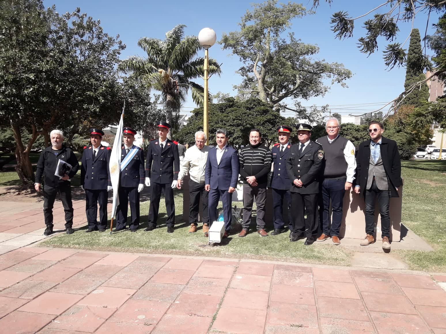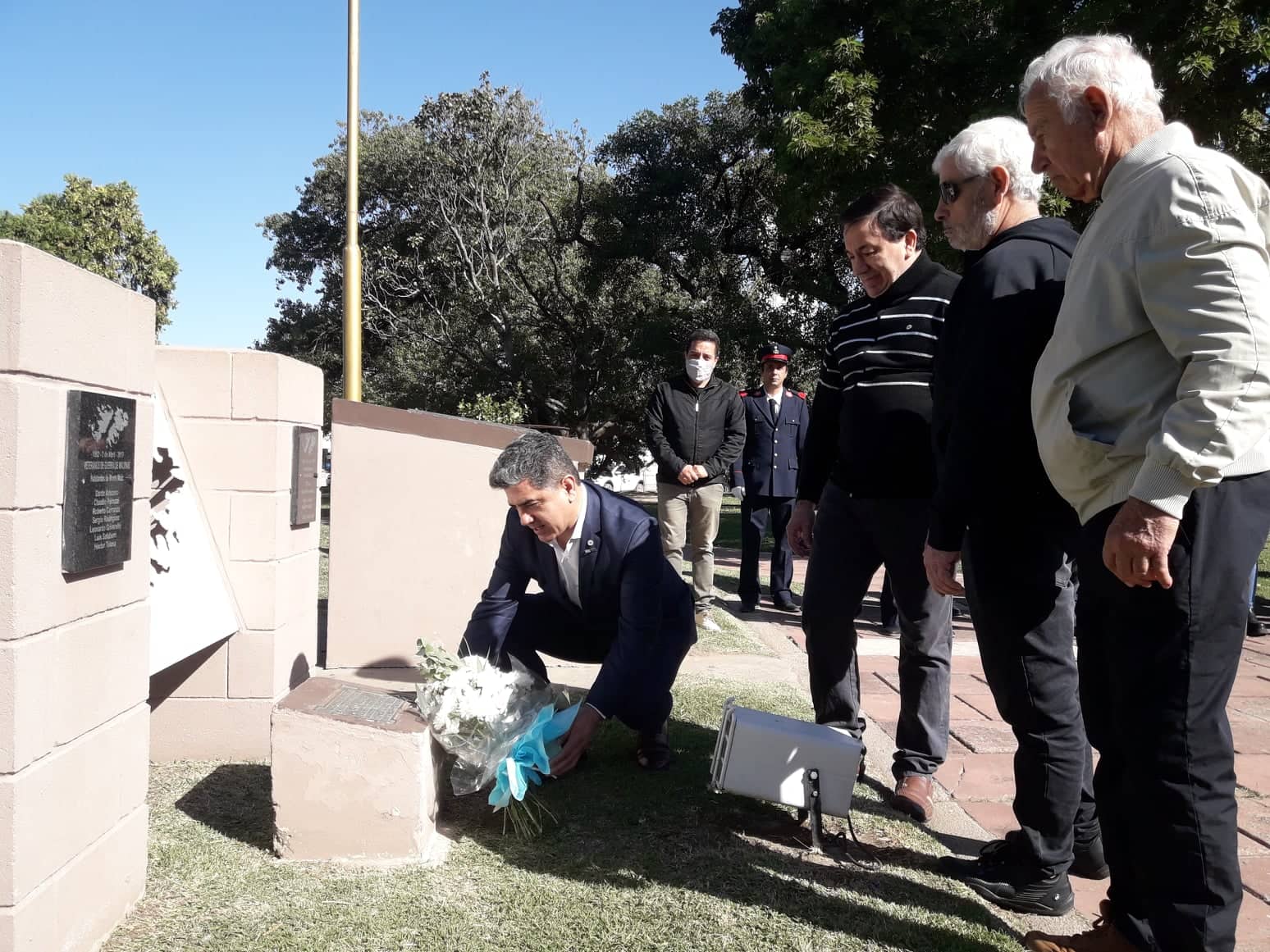 Además se contó con la presencia de Sergio Rodríguez, Roberto Carranza y Luis Salaberri, veteranos de guerra de nuestra localidad. También estuvo el Sr. Ángel Grivarello, papá de Leonardo Santiago Grivarello, también veterano de Malvinas. Ellos fueron los encargados de izar la bandera.