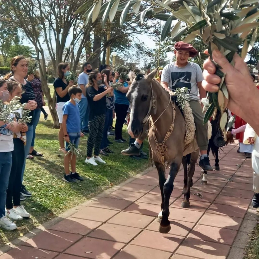 Es que la ceremonia comenzó en la plaza con la representación del ingreso de Jesús a Jerusalén con niños a caballlo que participaron de la celebración. Gran cantidad de gente se dio cita para presenciar esta tradicional celebración en vísperas de Pascuas.