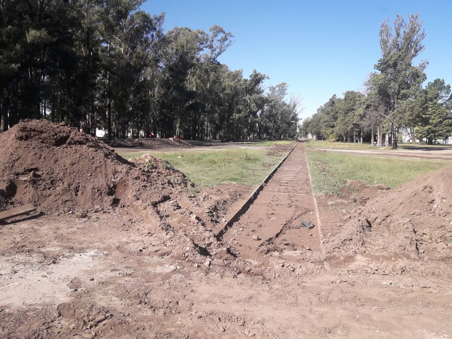 Como complemento, se está trabajando en el alteo del terreno del predio del ferrocarril para la posterior parquización del mismo. En las vías del tren se está haciendo una senda peatonal con mejorado para unir ambos extremos del lugar; calle Chubut con Santa Cruz.