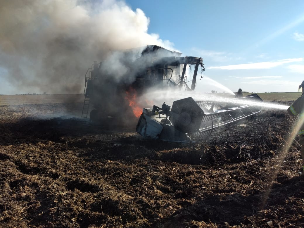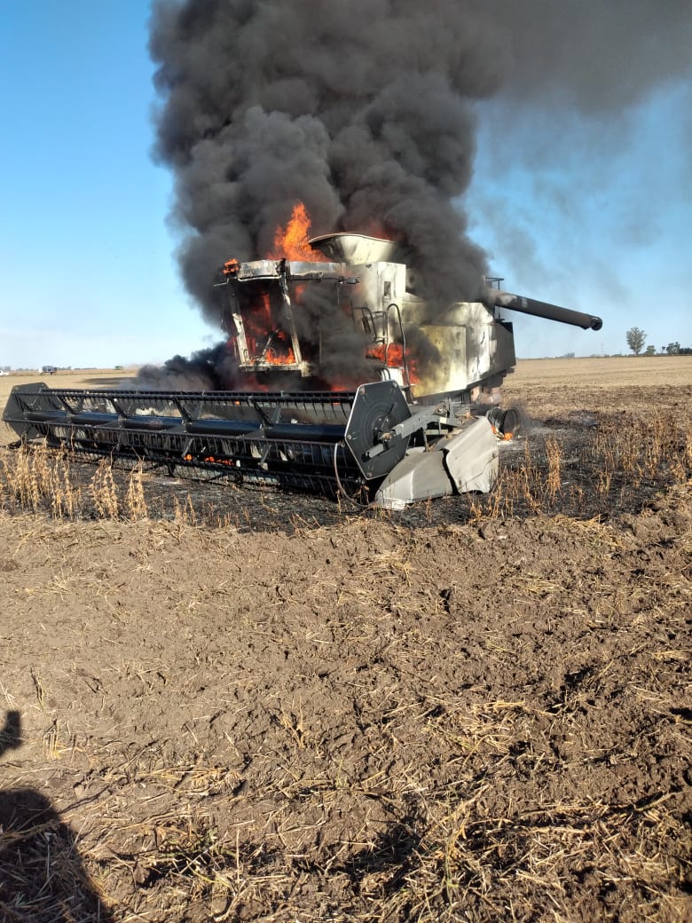 A las 15:00 hs. aproximadamente de este sábado, Bomberos Voluntarios de Monte Maíz debieron acudir a zona rural por el incendio de una cosechadora. Establecimiento rural del Sr. Pognante, al sur de nuestra localidad.
