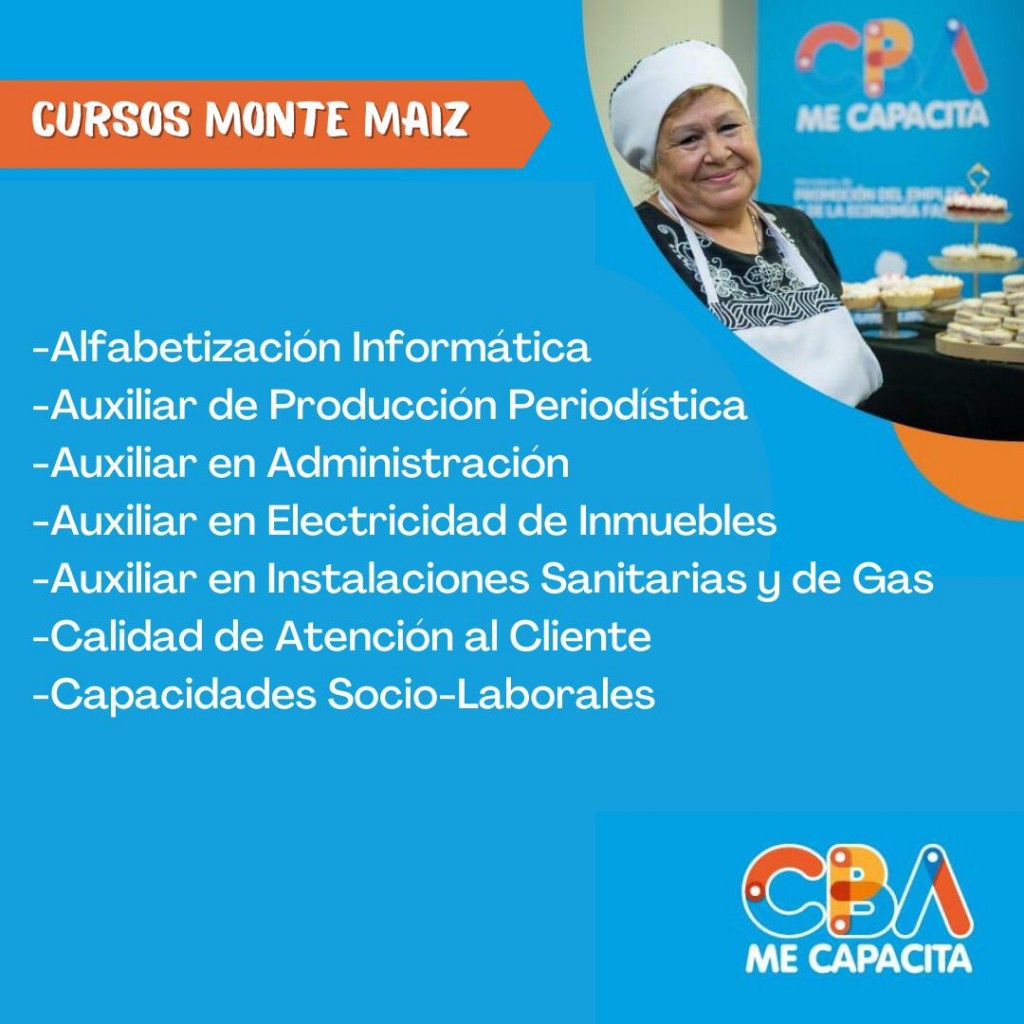 Las inscripciones son hasta el viernes 22 de abril y los cursos que se dictarán en Monte Maíz son: