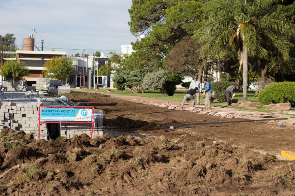 Desde el lunes que se comenzó a trabajar sobre la vereda de la plaza Gral. José de San Marín, sobre la calle que lleva el mismo nombre, en la obra de calles de tránsito restringido en nuestra localidad.
