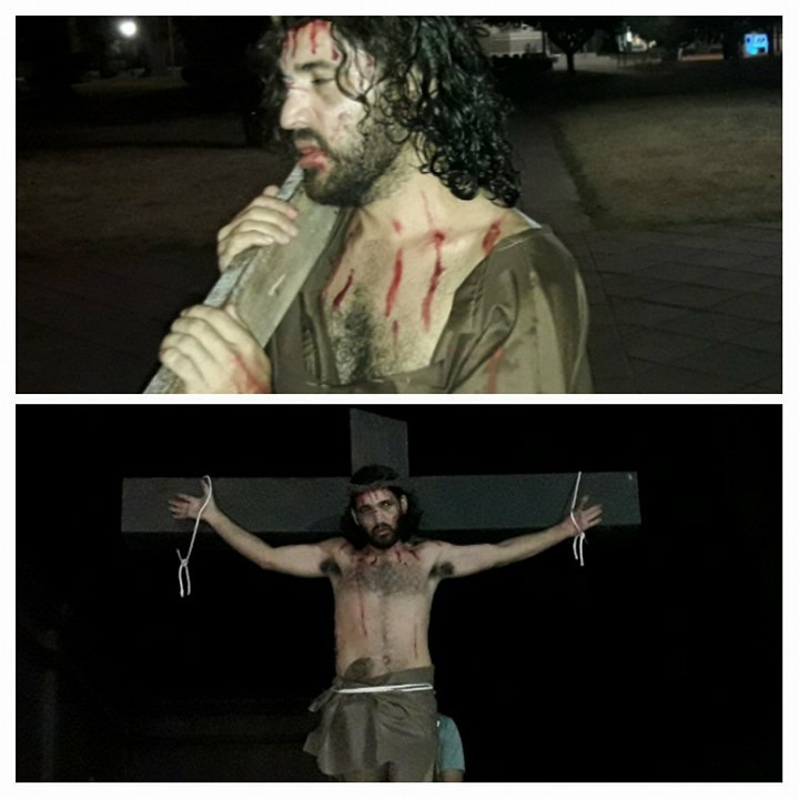 Las 15 estaciones estuvieron representadas en la plaza José de San Martín y Jesús fue personificado por Ezequiel Ríos, artista de nuestra localidad, que hizo una representación brillante de Cristo.