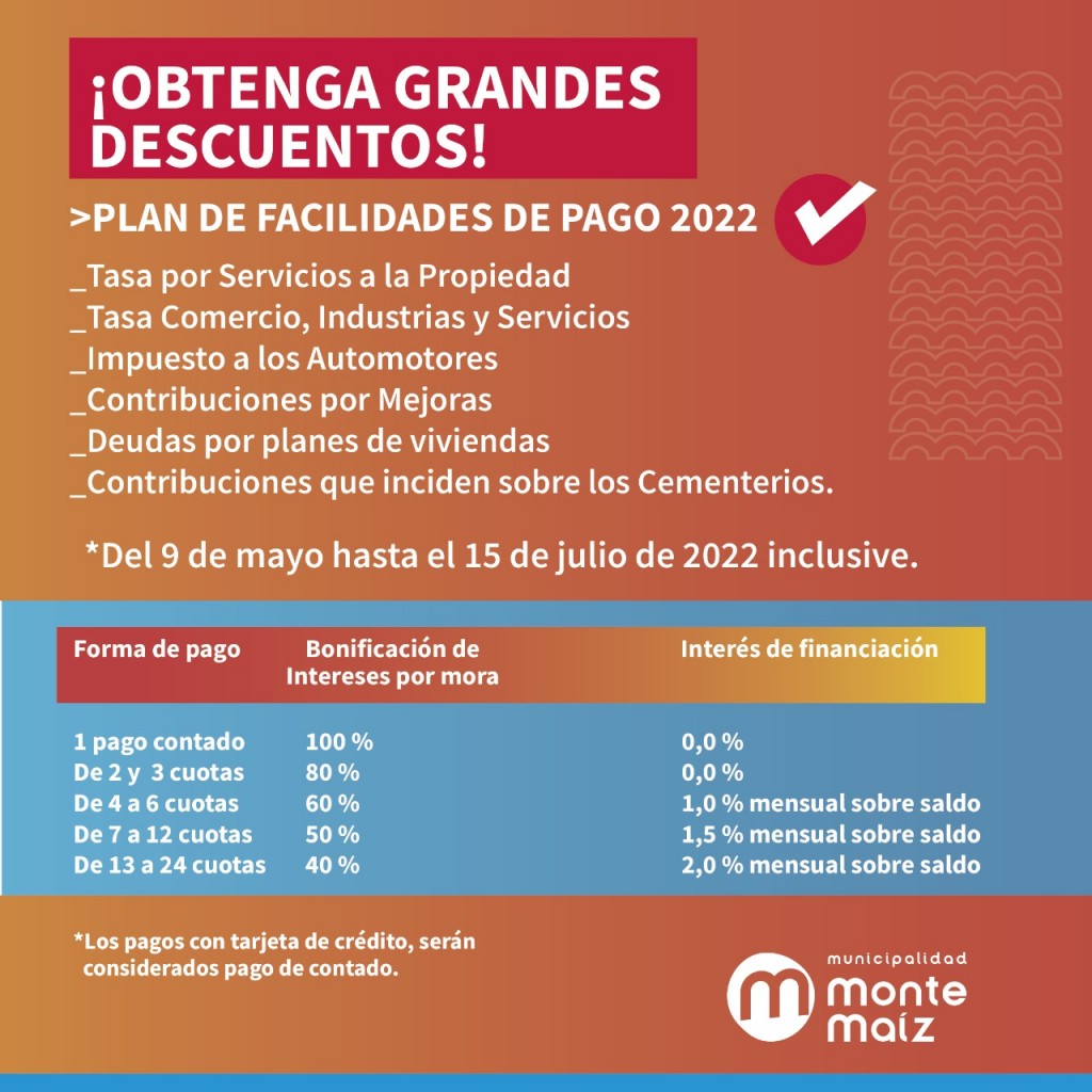 La ordenanza N° 1552/2022 ya fue promulgada y el Plan de facilidades de Pago se pondrá en vigencia el 9 de mayo del corriente año hasta el 15 de julio inclusive.