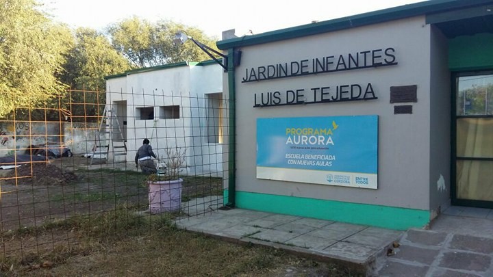 Avanza a buen ritmo de obra la Salita de 3 años del Jardín de Infantes Luis de Tejeda que se está construyendo con aportes del Gobierno Provincial a través del Programa Aurora. Se espera que para fines del mes de Abril el aula se pueda inaugurar.